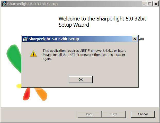 Sharperlight 5.2 アプリケーションでは、Microsoft .NET Framework4.6.1 以降がインス