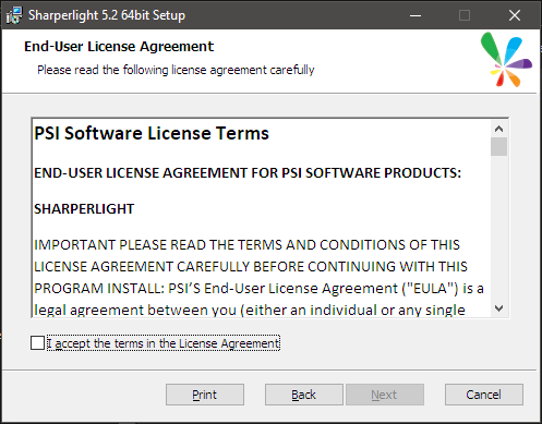エンドユーザー使用許諾契約(EULA)は、ソフトウェアの作成者と、Sharperlightを使用している個人または法人との間の法的拘束力のある契約です。 利用規約を読んだ後、同意チェックボックスを有効にして、この管理契約に同意します。