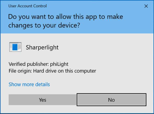 インストールはマシンベースであり、すべてのユーザーが同じアプリケーションファイルとユーザー設定を共有します。この共用を許可するには、ユーザー特権を昇格させる必要があり、ソフトウェアのインストールを確認するためのユーザーアカウント制御(UAC)の承認ウィンドウが表示されます。 現在のユーザーがソフトウェアをインストールする権限を持っていない場合は、別のログインとパスワードが要求されます。